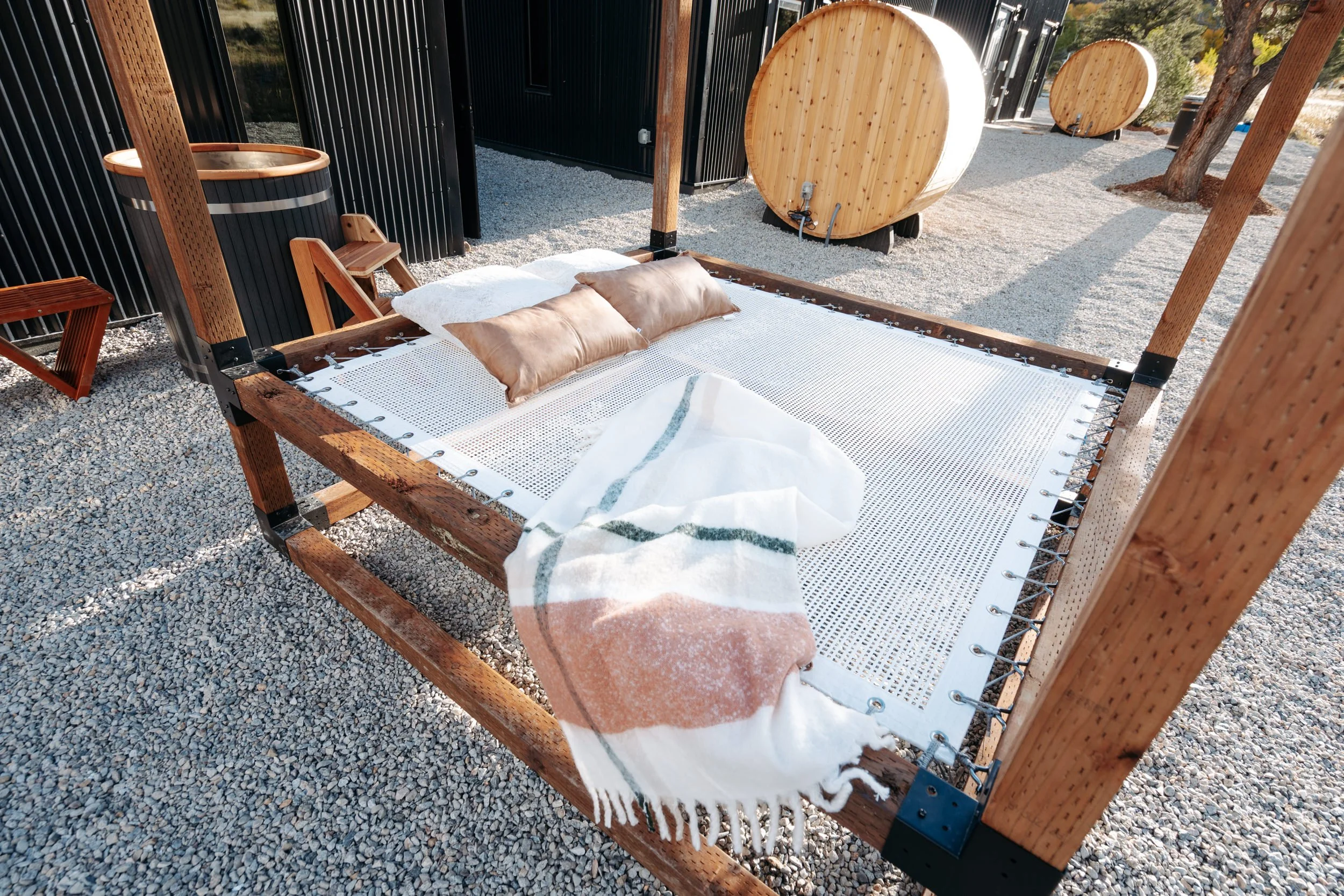 Each 480 sq ft micro cabin thoughfully designed for travelers seeking a blend of modern comfort, outdoor adventure and wellness.